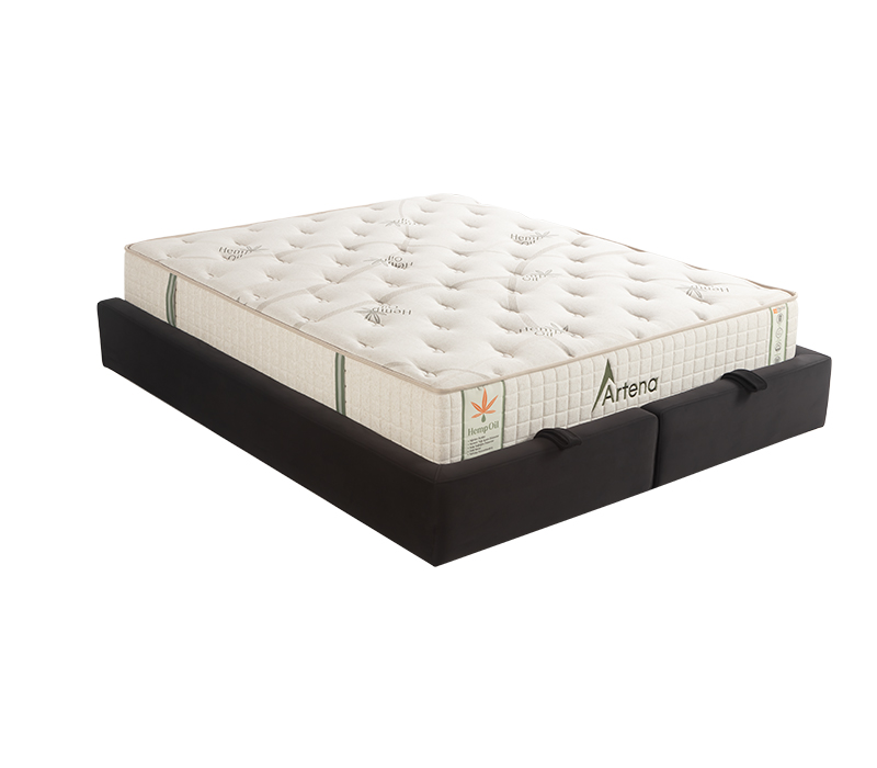 Матрак Artena с плат, съдържащ натурално конопено масло, осигурява релаксиращо усещане по време на сън. С покет пружини за по-добра опора и комфорт.
